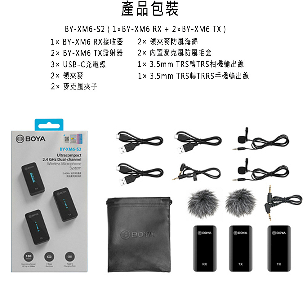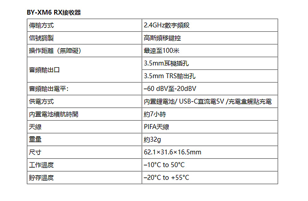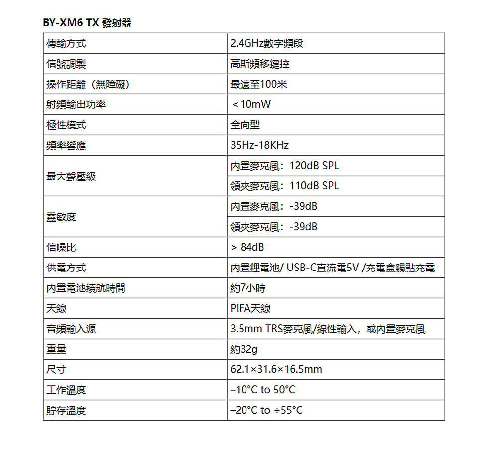 即時耳機監聽功能 1個接收器、2個發射器