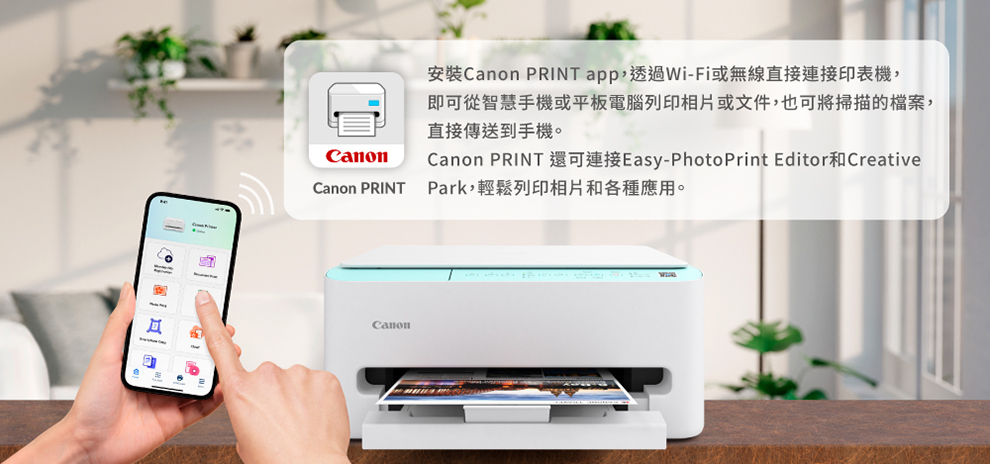 ● 援2.4GHz/5GHz 雙頻Wi-Fi連接,一台可多人分享使用,還可透過智慧型手機或平板電腦,無線列印及掃描。