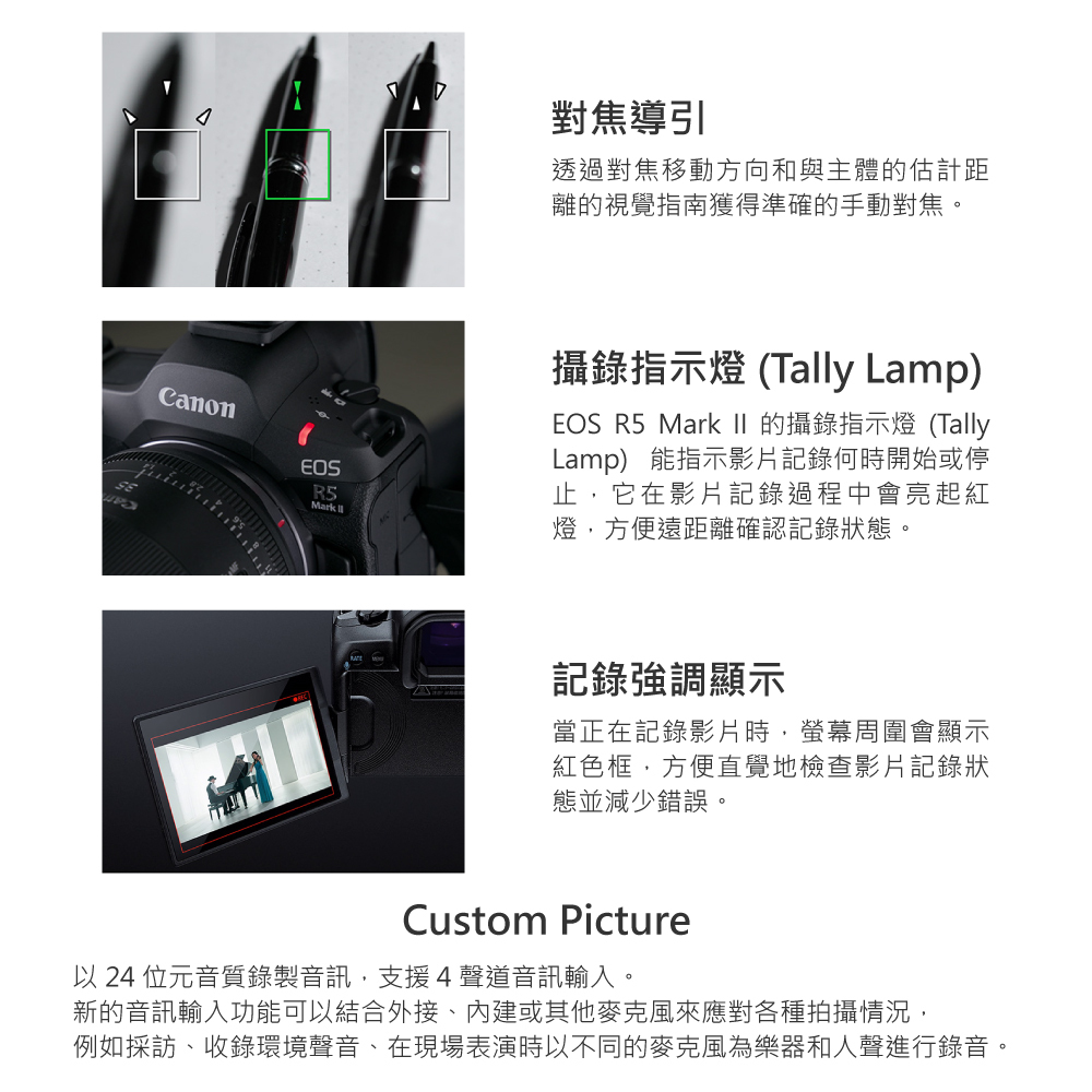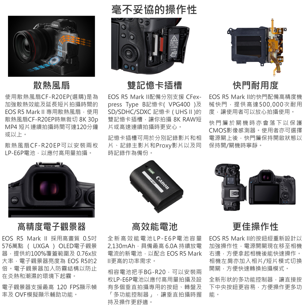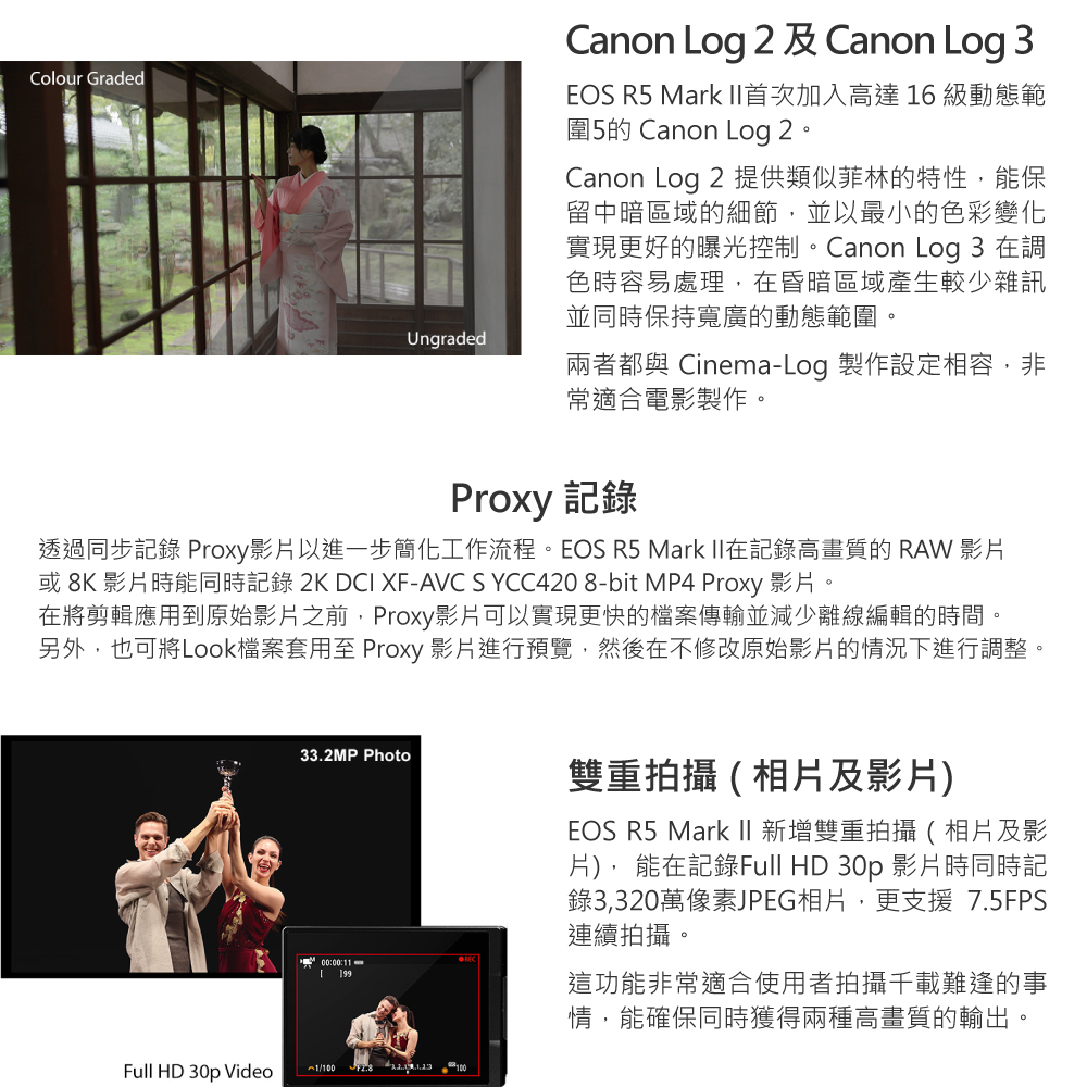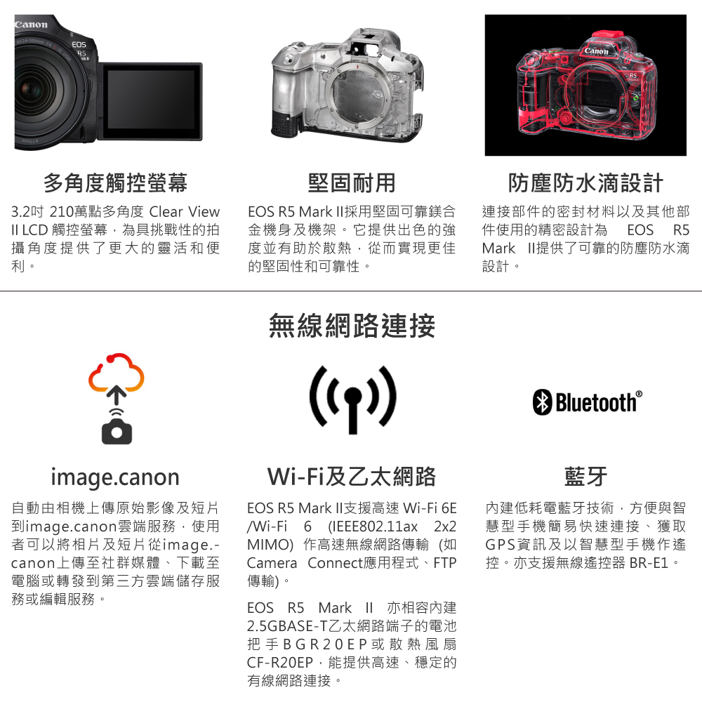 無論是靜態攝影、影片拍攝,還是創意影像製作,Canon EOS R5 II 都是影像工作者與攝影愛好者的夢幻之選,讓每一次拍攝都成為藝術的極致呈現!