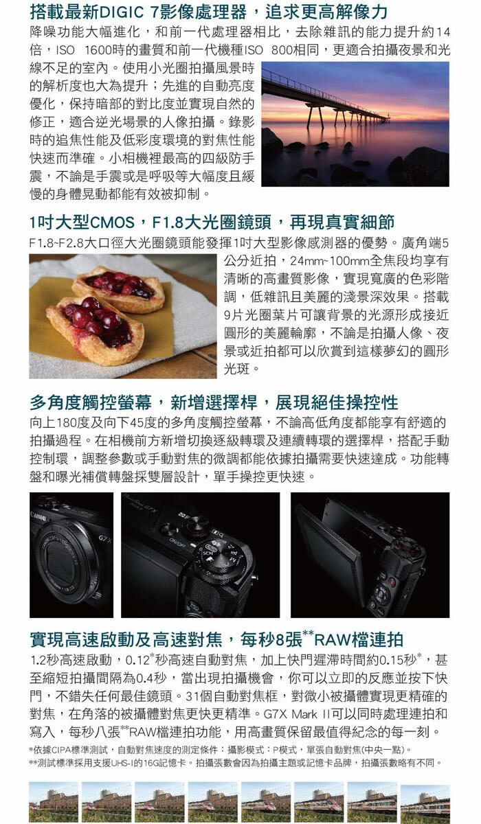 強大影像處理:搭載 DIGIC 7 影像處理器,低光環境表現更出色。