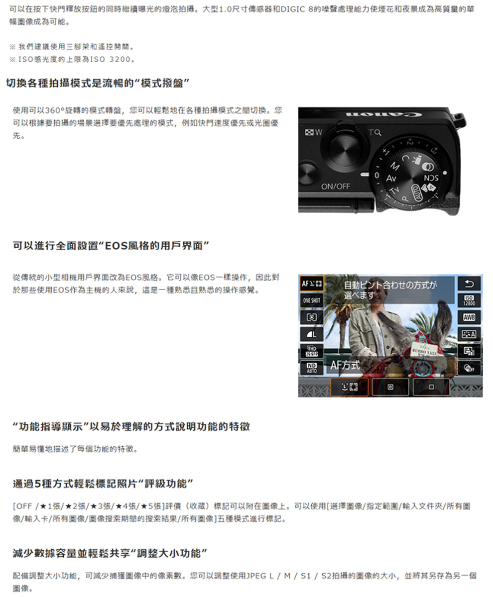 DIGIC 8 處理器:提供優異畫質與快速反應,低光環境表現卓越。