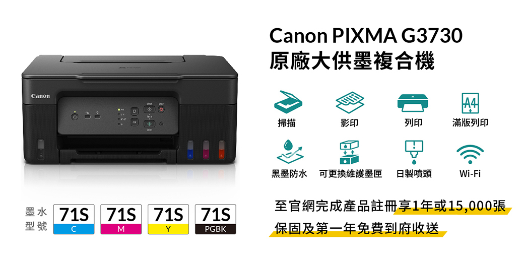 加購1組墨水升級3年保固