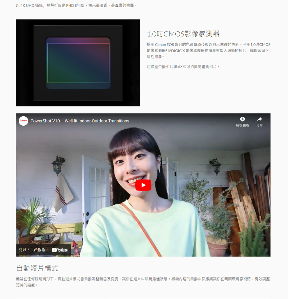 1吋CMOS影像感測器的4K UHD 30p短片及短片數位IS