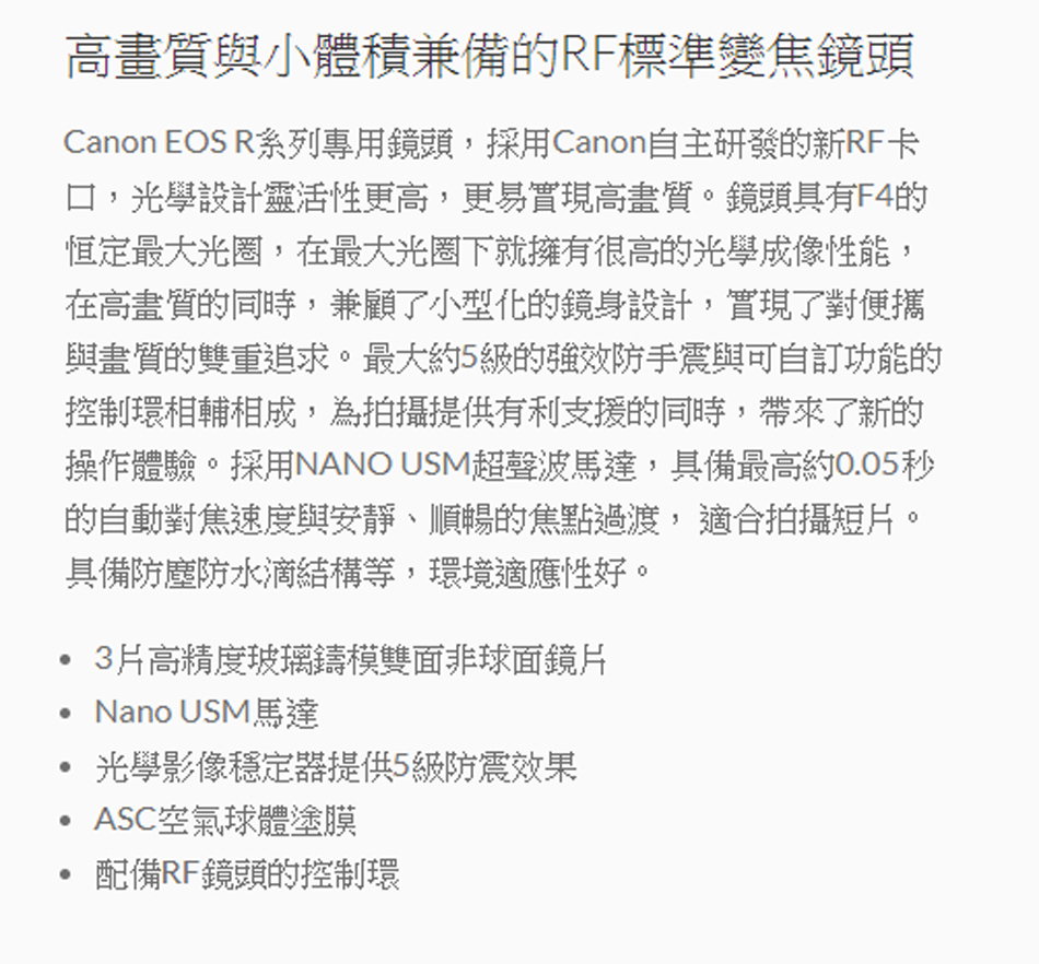 Nano USM馬達,光學影像穩定器提供5級防震效果