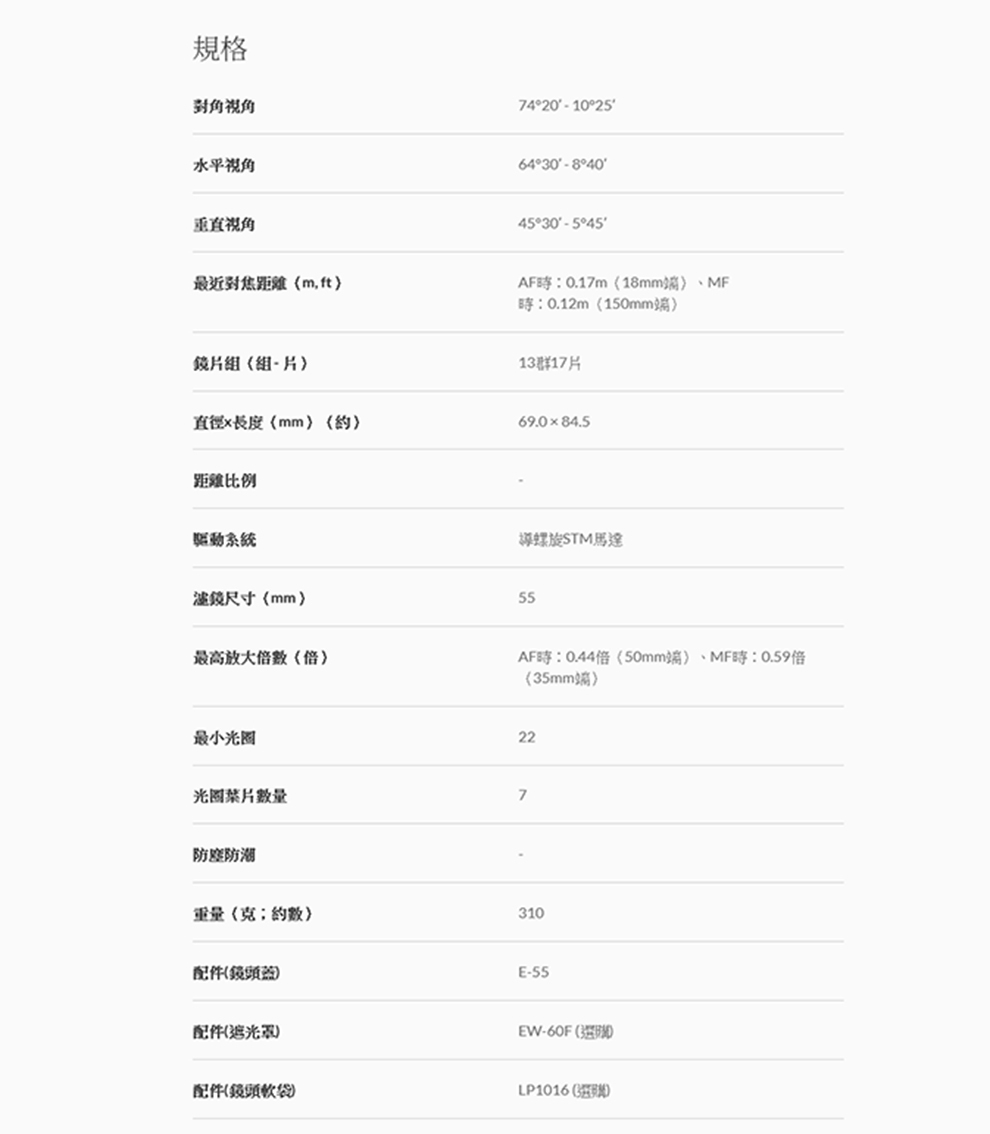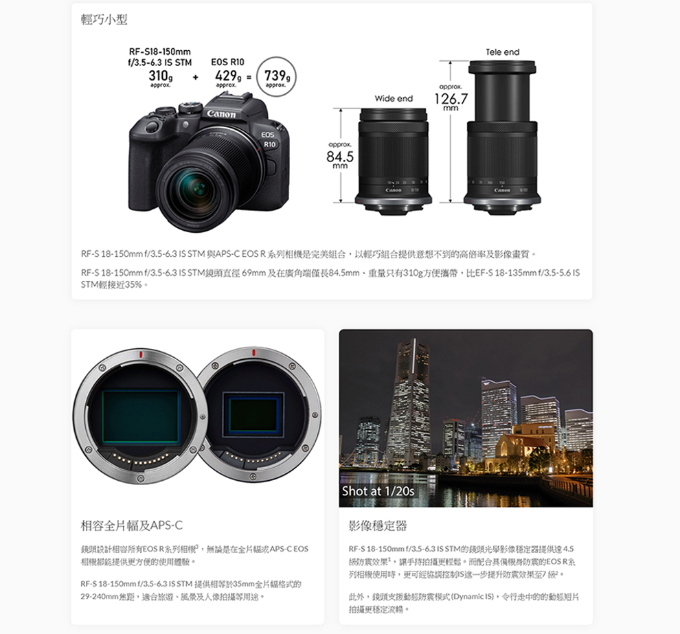 焦距範圍為18至150毫米(=全片幅相機29至240毫米)