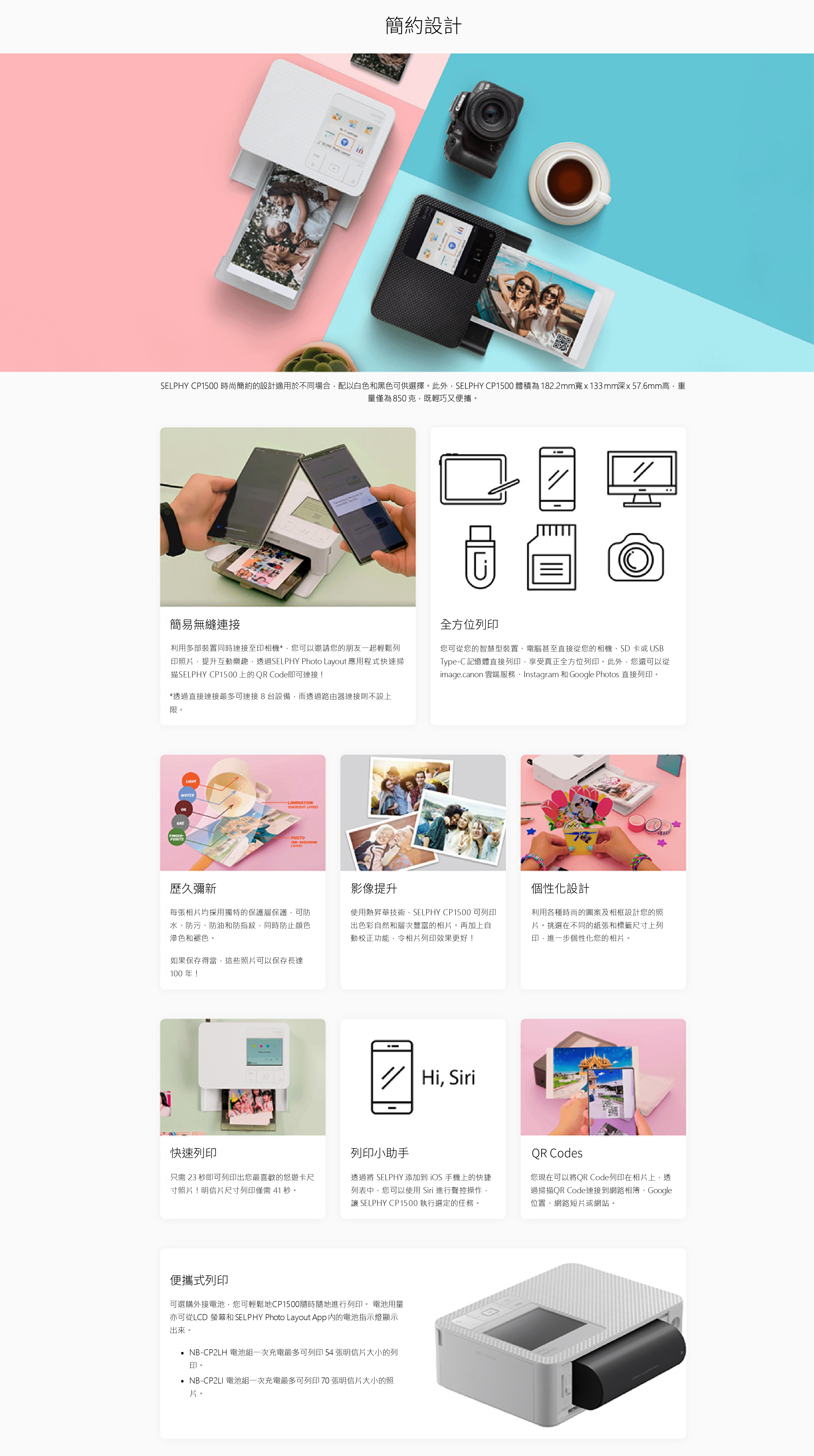 利用 SELPHY CP1500 設計和美化您的影像,並列印出不同尺寸的持久相片。你可直接從多種設備 (例如: 智慧型手機、電腦,甚至直接從您的相機)進行列印。