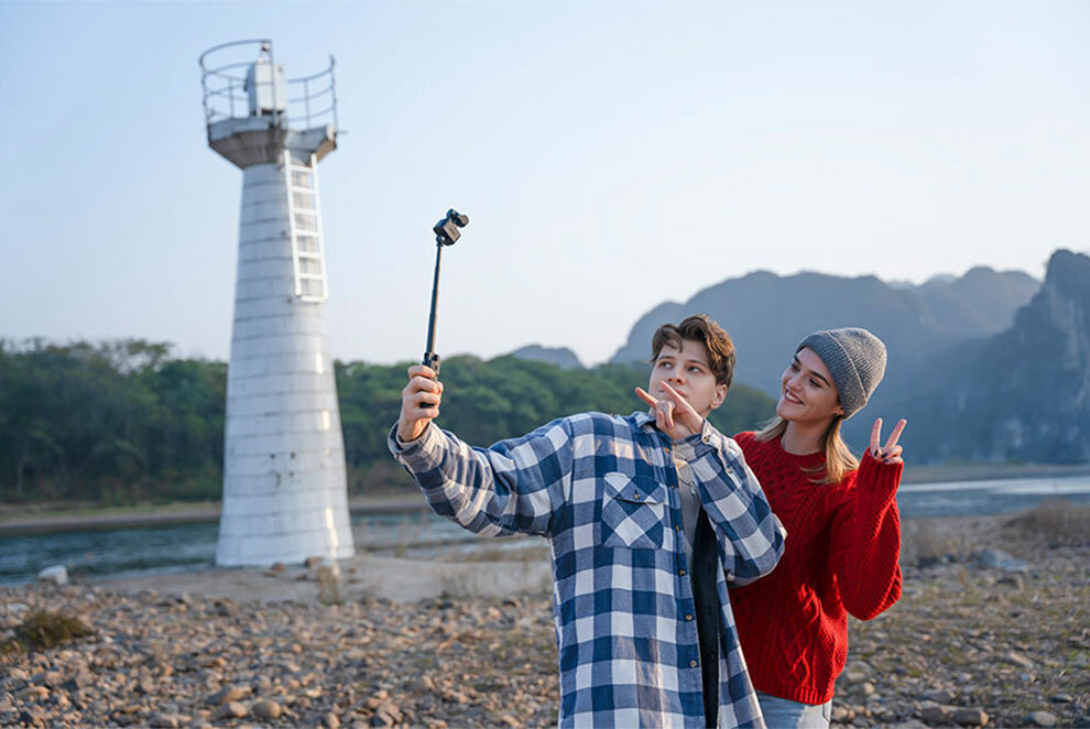 在人群中自拍和航拍