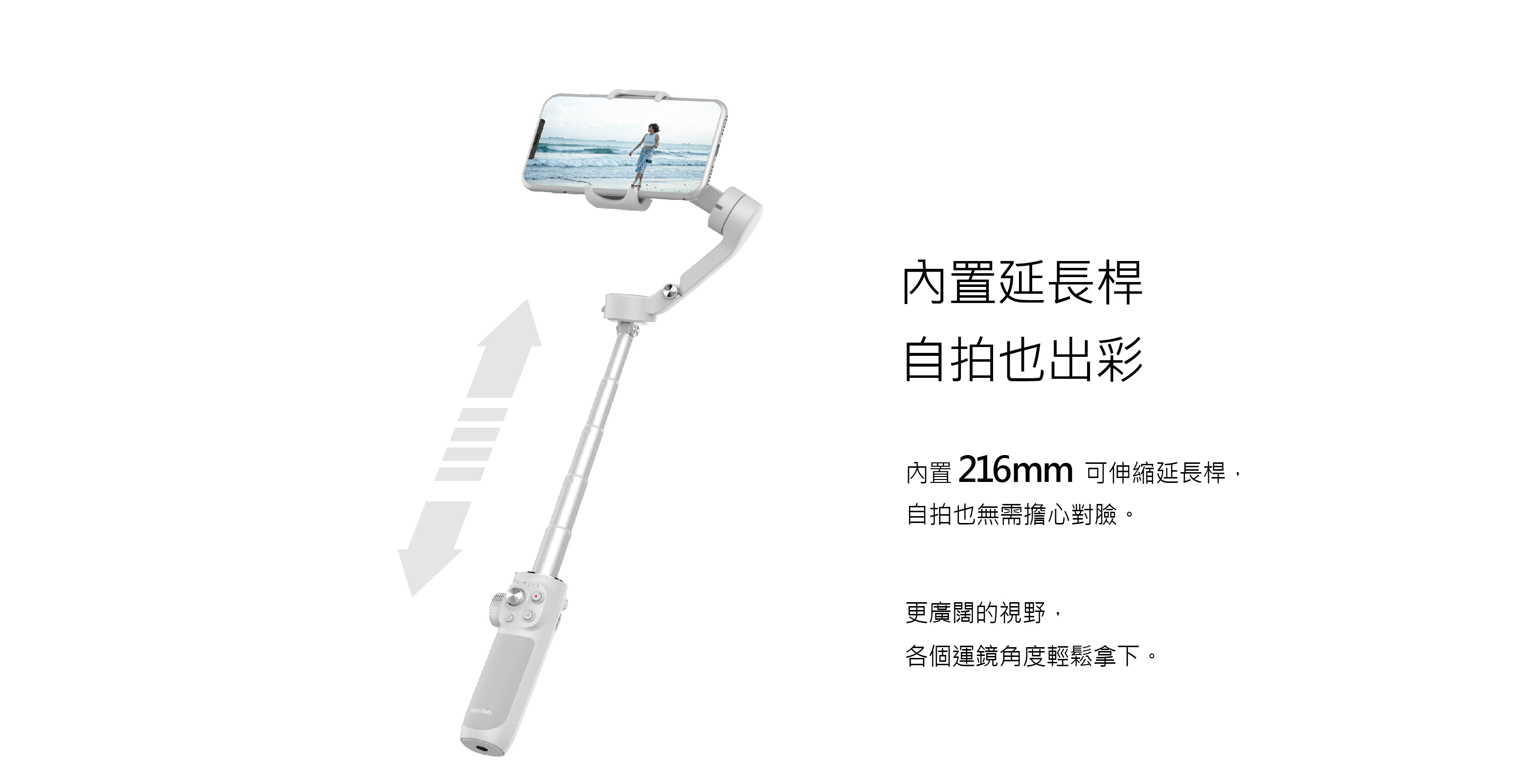 機身自備延長桿,可伸縮自如