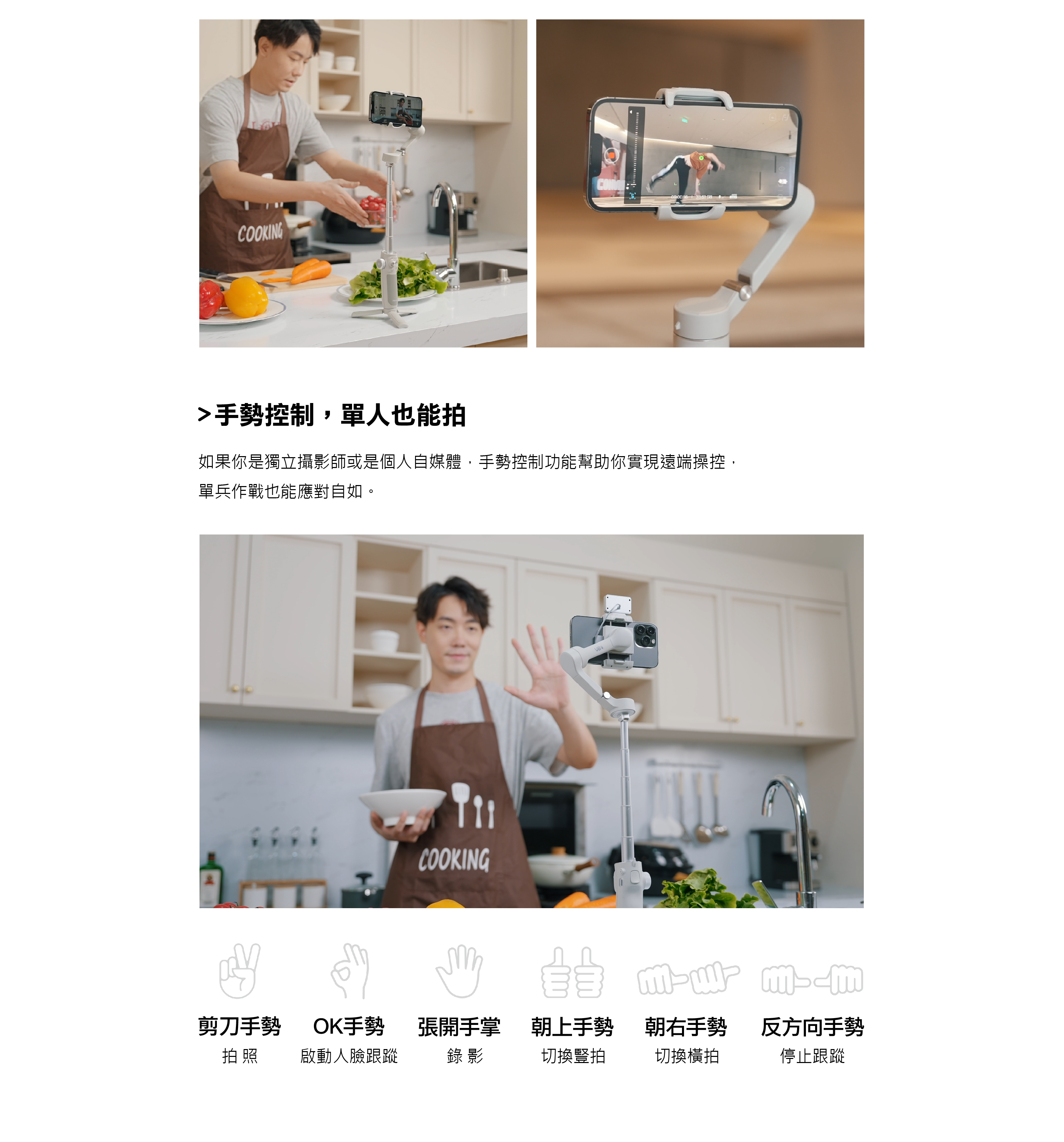 手勢操控,單人拍攝也輕鬆