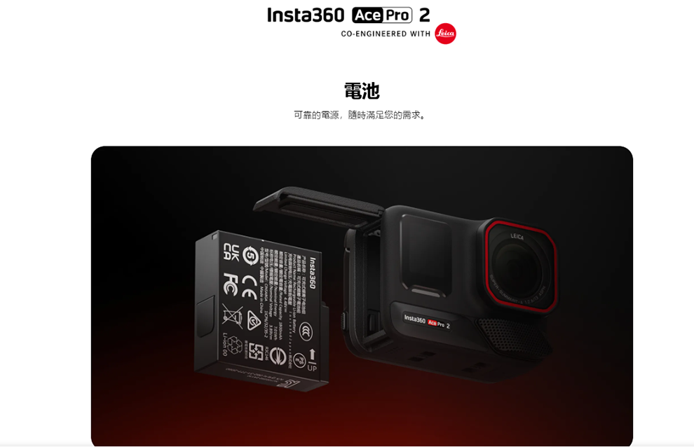 ACE PRO2 電池具備更高容量(1800mAh),相較前代提供更長續航力,適合長時間拍攝需求。