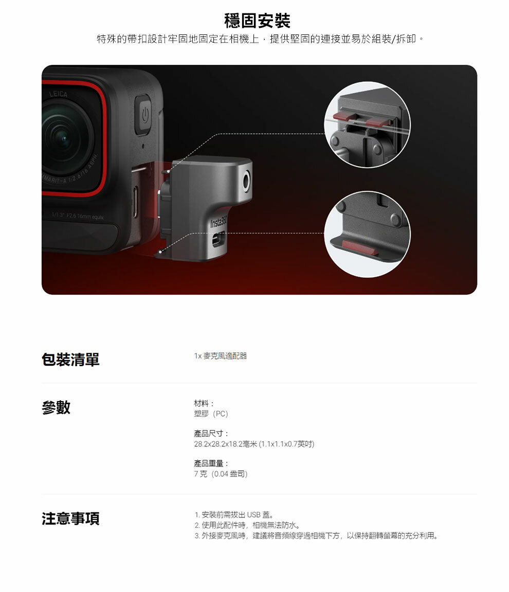 允許相機充電並同時連接到麥克風