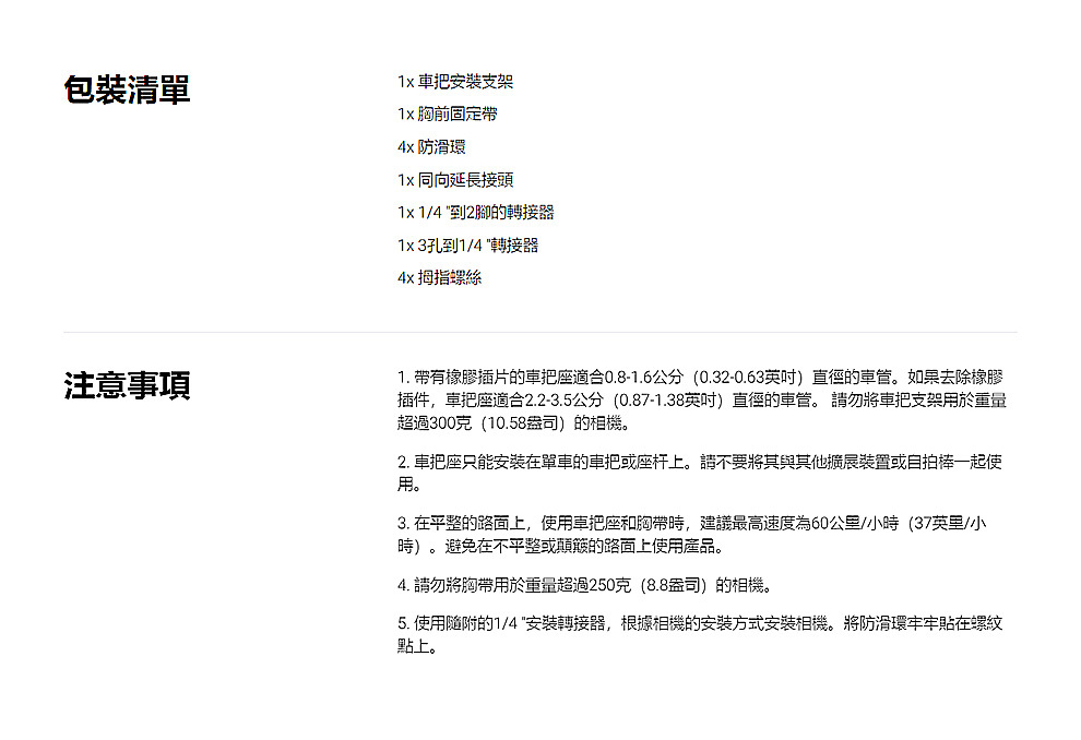 車把支架不能與其他擴展裝置或自拍棒一起使用。