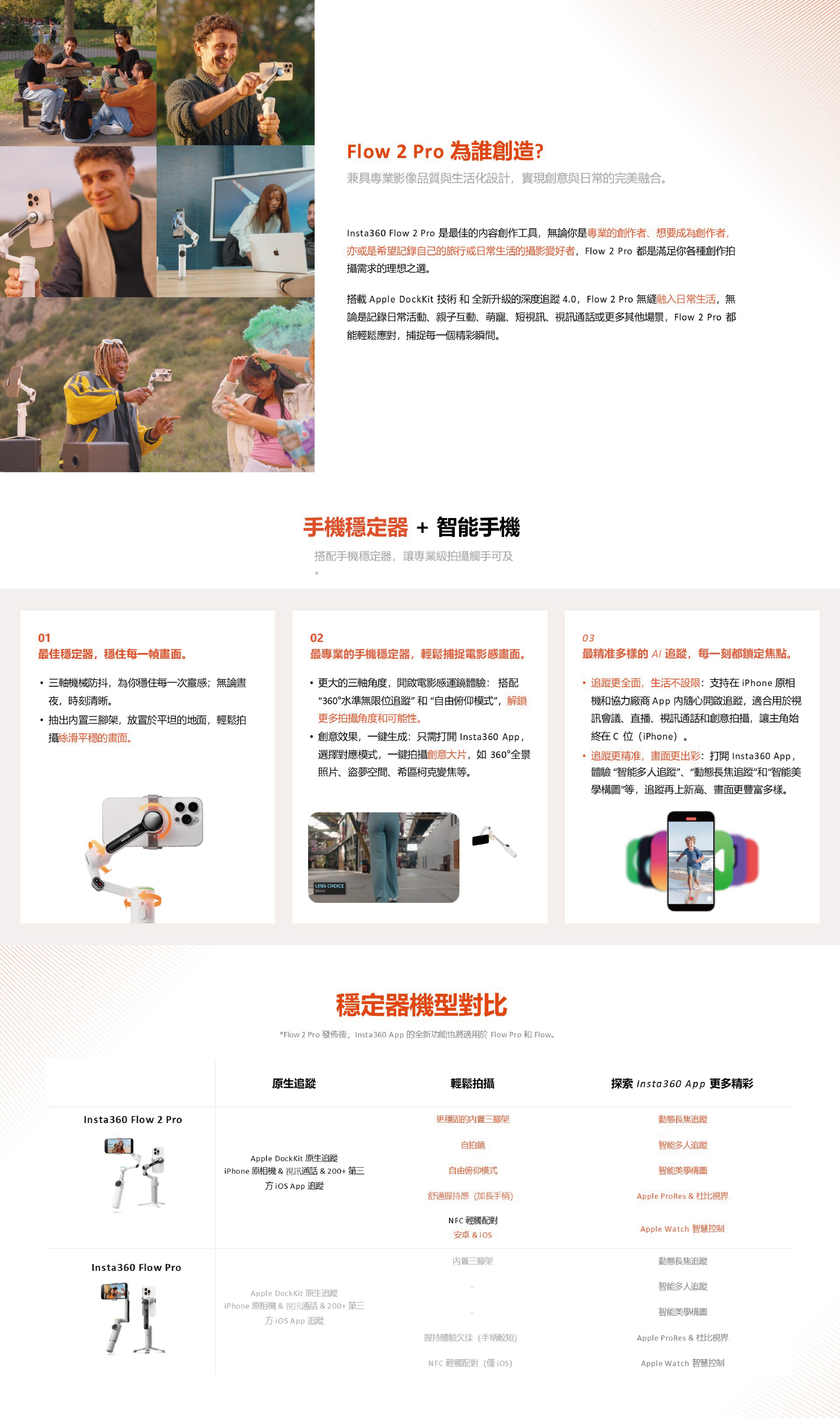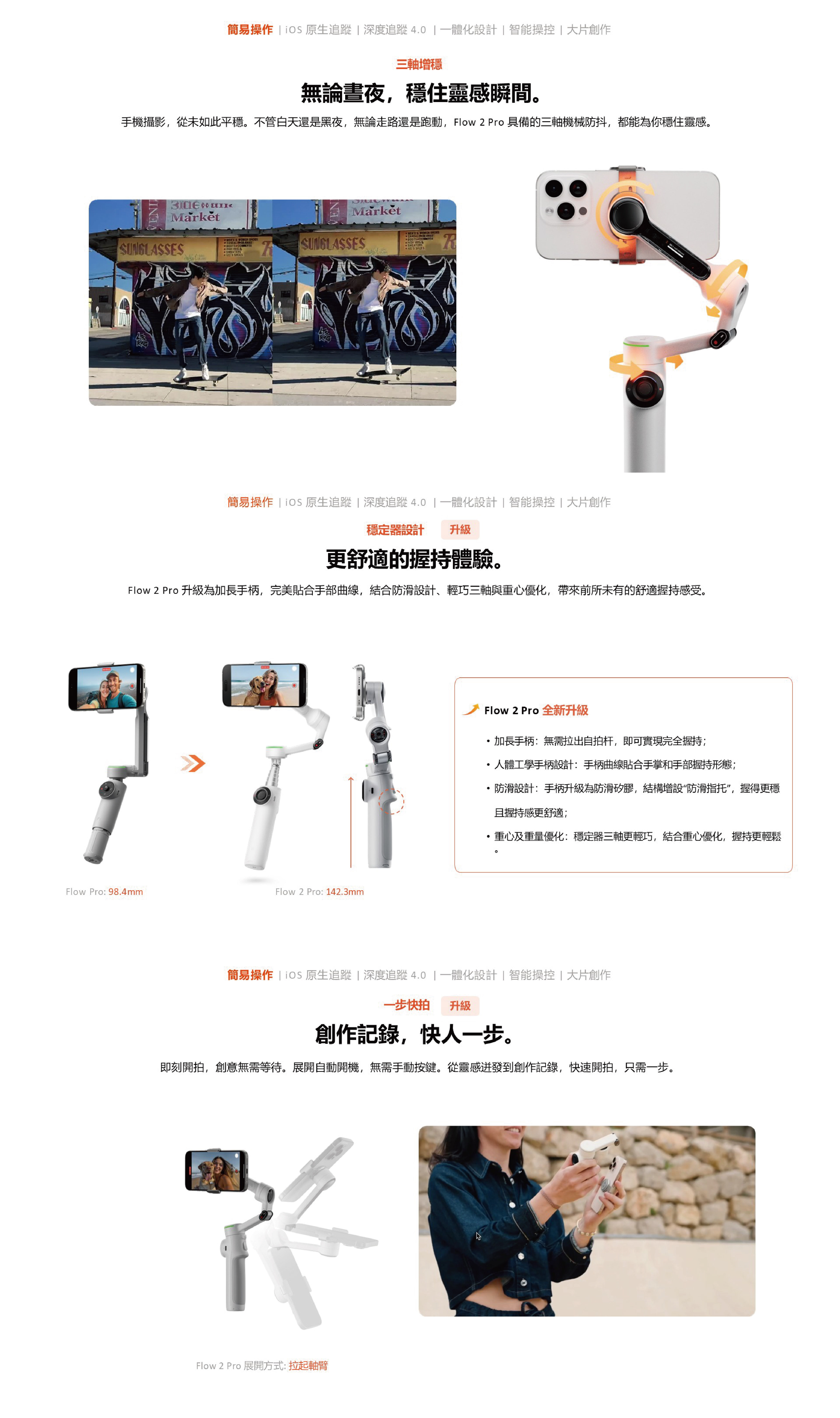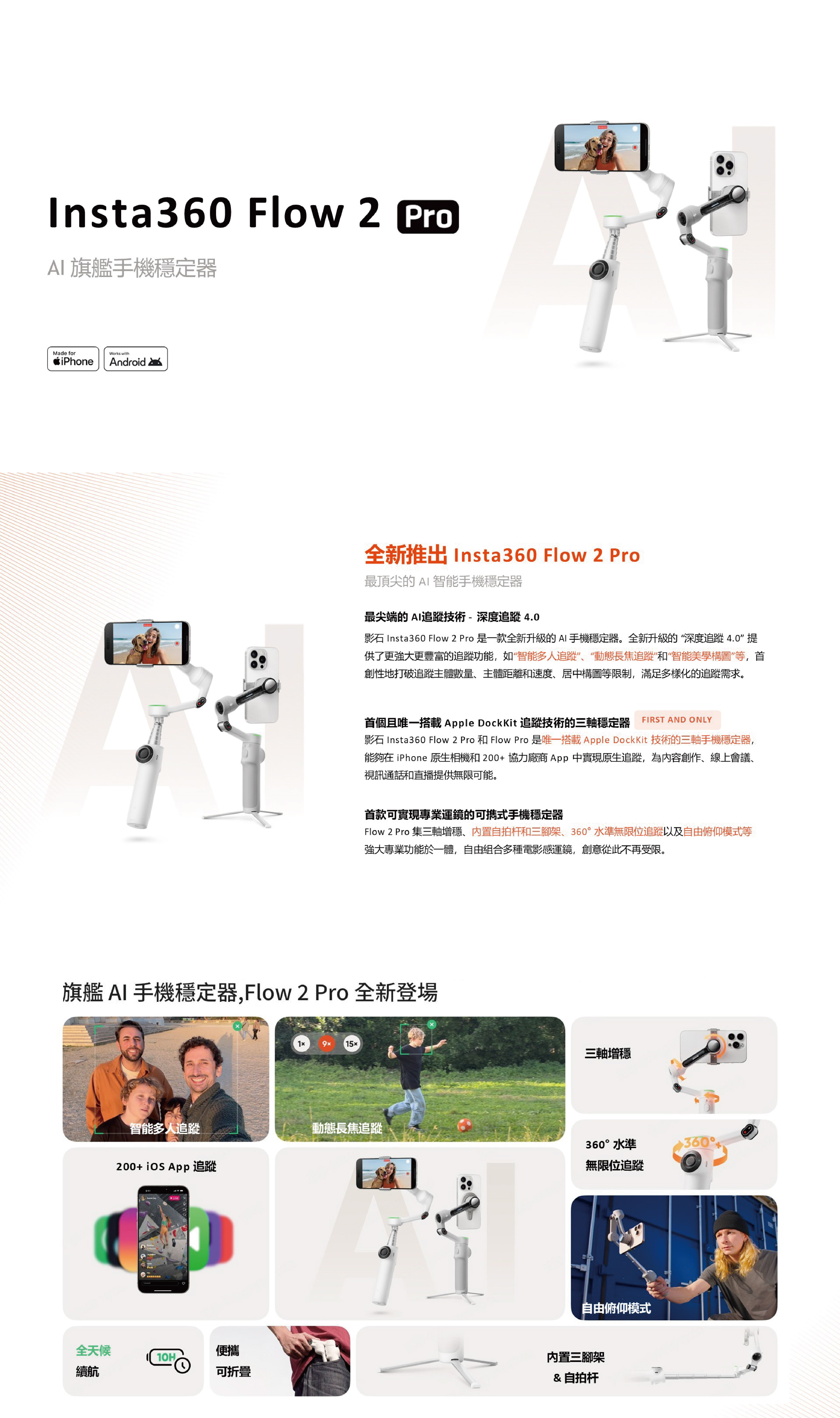 Insta360 Flow 2 Pro 套組系列,無論是輕量級日常記錄還是專業級影像創作,都能提供卓越體驗,是手機創作者的不二之選!