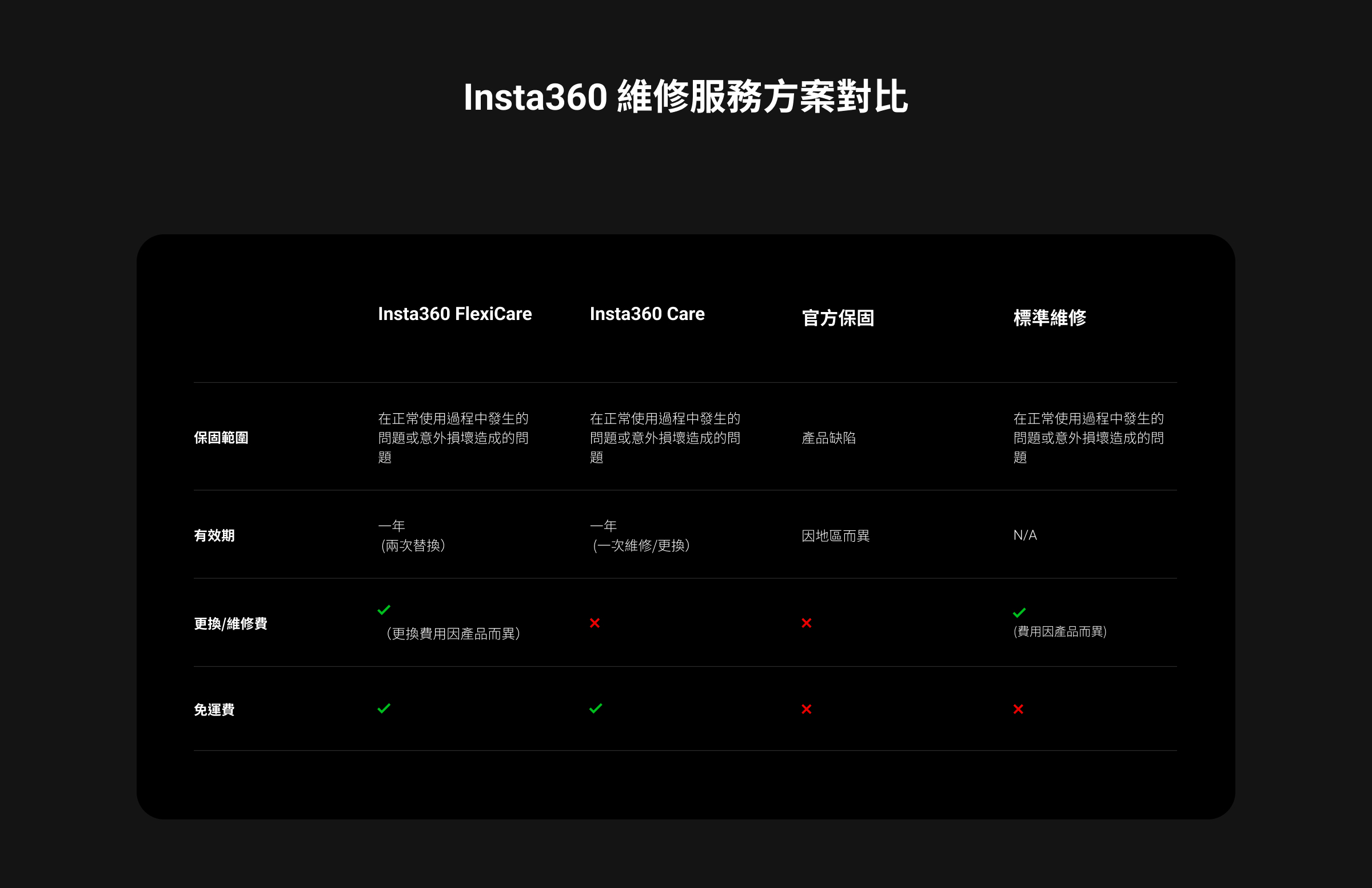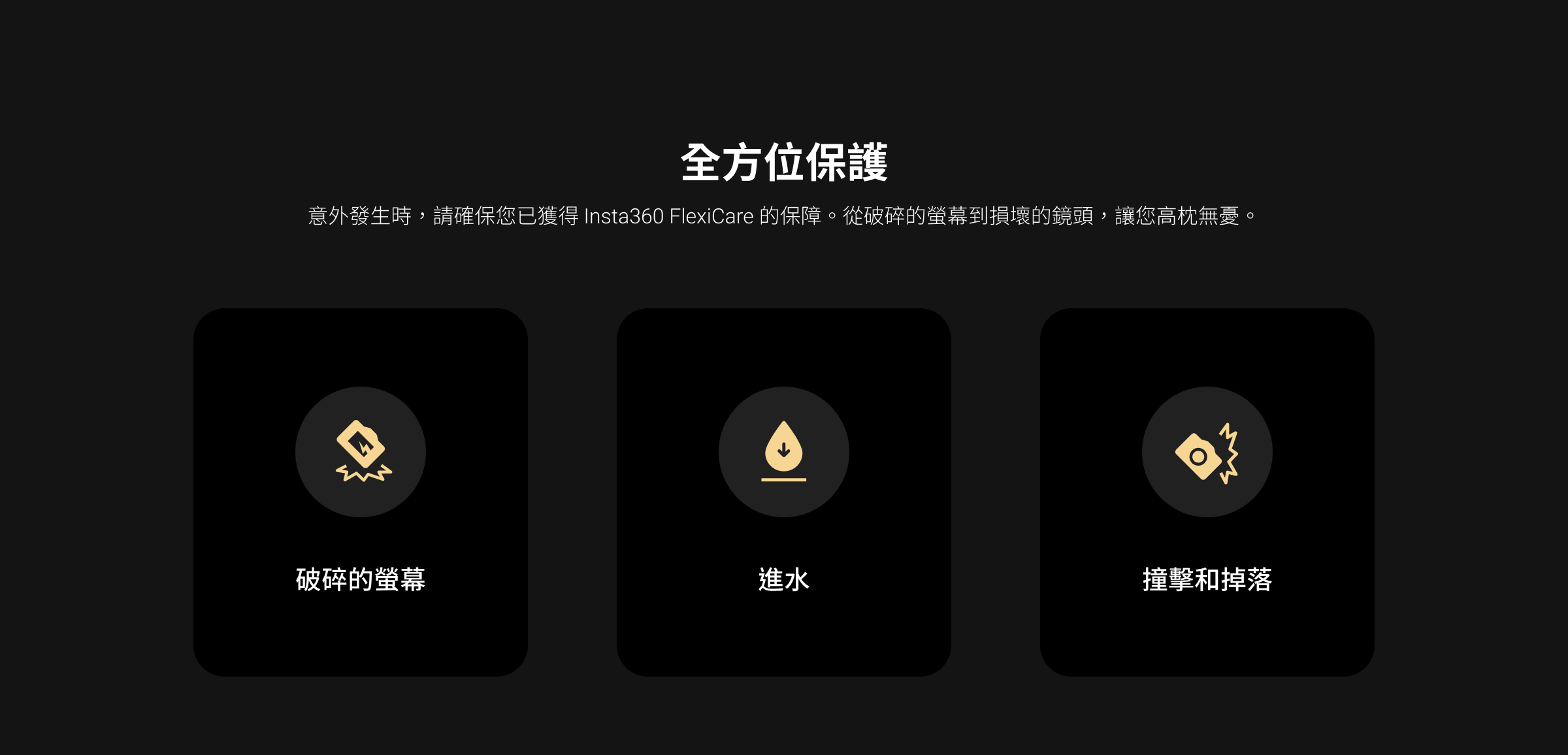 Insta360 FlexiCare僅涵蓋Insta360官方產品。 不包括聯名合作產品。