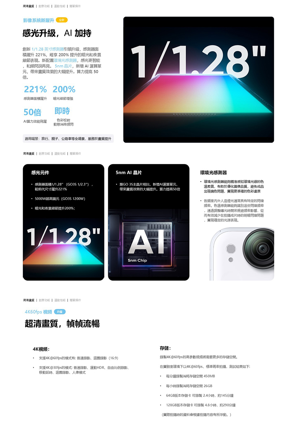 ❖ 1/1.28" 大感光元件,低光表現完美