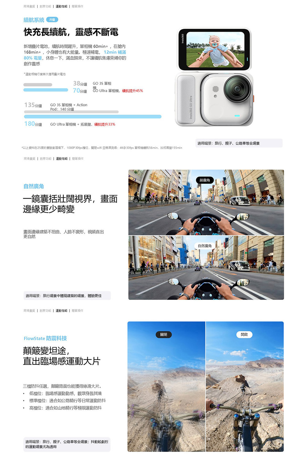 ❖ FlowState 穩定技術 + 360° 水平鎖定