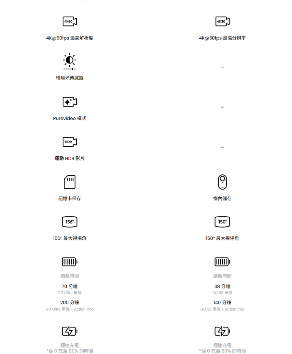 ● 與 GO 系列先前型號不同 ,此型號未配置內建記憶體 。 請使用 microSD 卡 (需另行購買) 。
