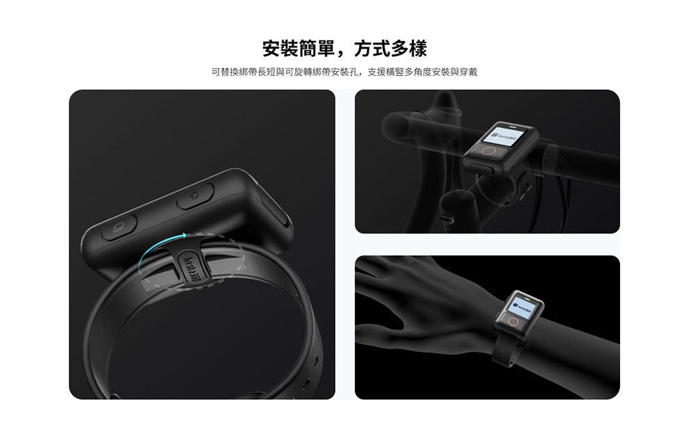 可轉動綁帶孔,支援多種安裝與穿戴方式