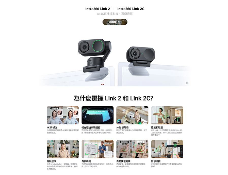 Link 2 和 Link 2C 是經濟實惠的 4K 網路攝影機,具有卓越的視訊和音訊品質。 它們透過高性能