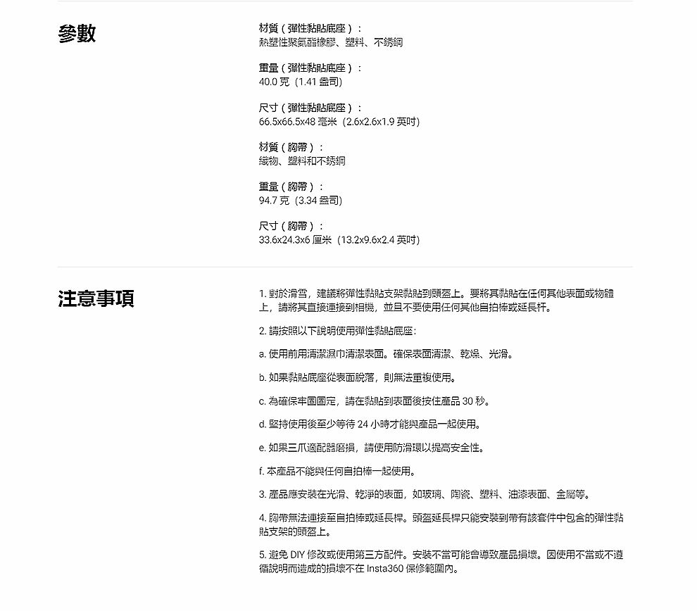 包括胸帶、頭盔延長桿、彈性黏貼支架和安裝部件