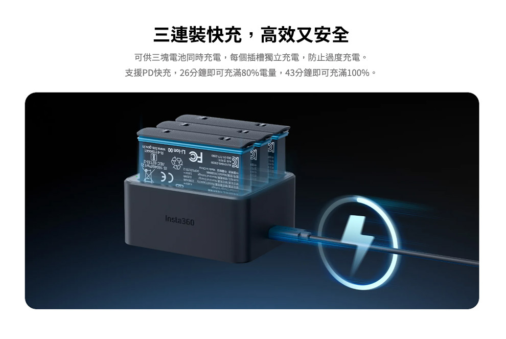 可供三塊電池同時充電