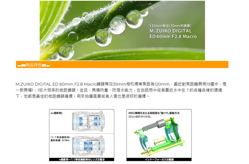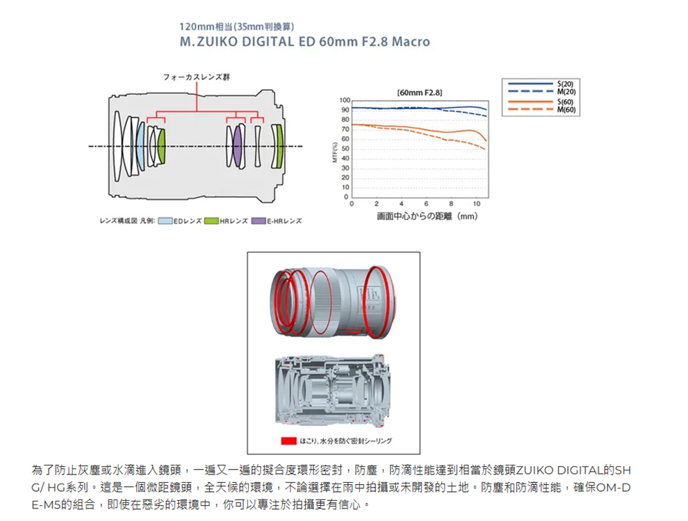 焦點距離:60mm(以35mm換算相當於120mm)