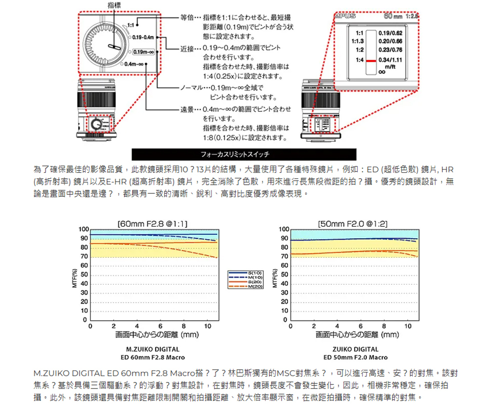 最大攝影倍率:1.0倍(以35mm換算相當2.0倍)