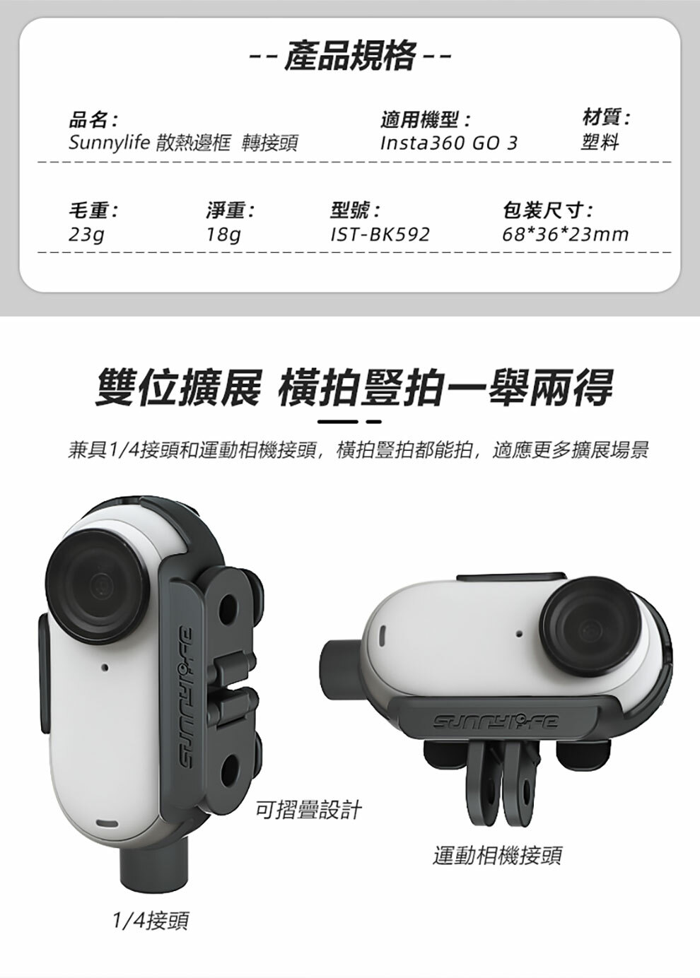 兼具1/4接頭和運動相機接頭