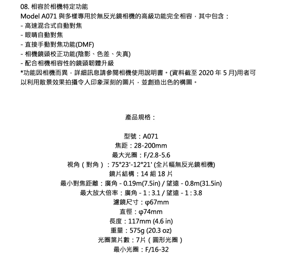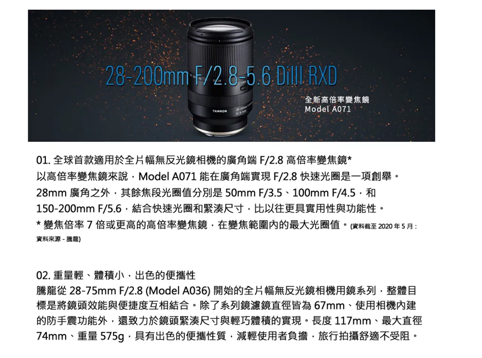 全片幅無反光鏡相機的廣角端 F/2.8 高倍率變焦鏡