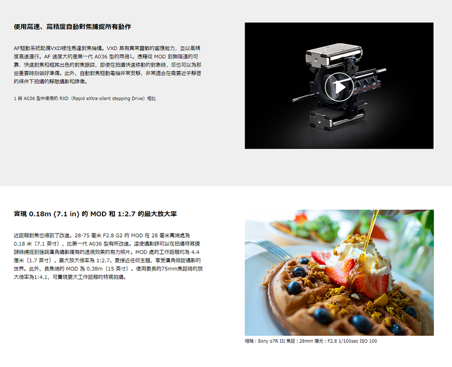廣角端最近攝距0.18m、最大攝倍 1 : 2.7,可進行創造性強的特寫拍攝